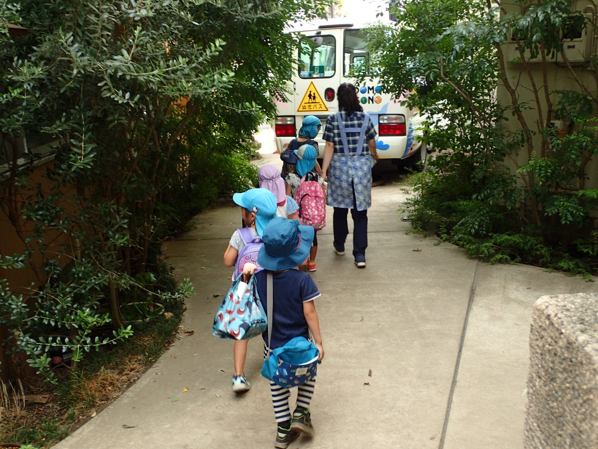 お帰りの準備と園バスの出発