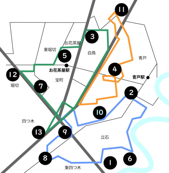 | ※現在⑪の先「金町消防署亀有出張所前」までコースを延ばしています。 | |