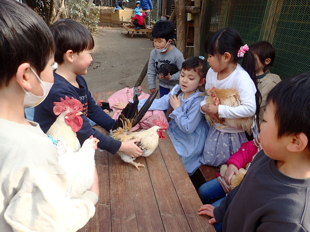 動植物に囲まれた生活は、飼育することや観察し学ぶことを目的とするのではなく、自然と周囲に存在し追いかけまわしたり、生まれることや死ぬことをそれぞれに感じながら共存していくことの大切さを感じています。動植物との関りをとおして、子どもとの対話や必死な思いが聞こえてきます。
