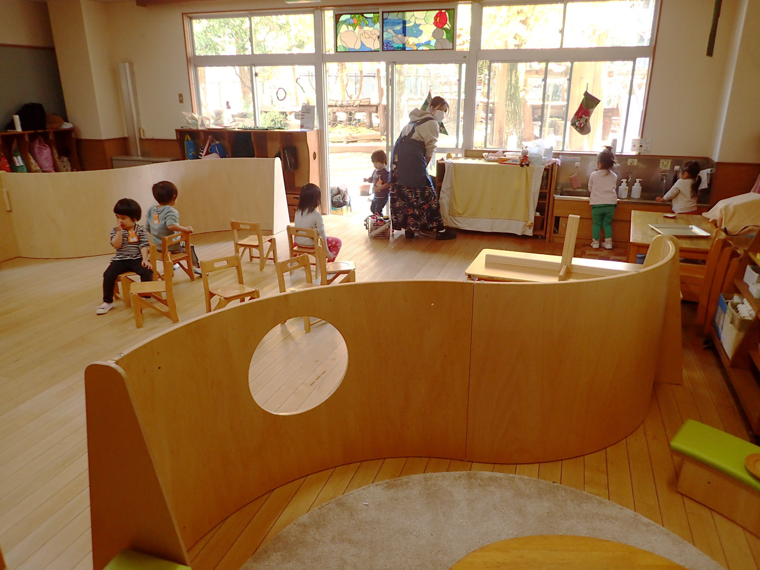 - ・保育室や園庭で先生の周りでの遊び