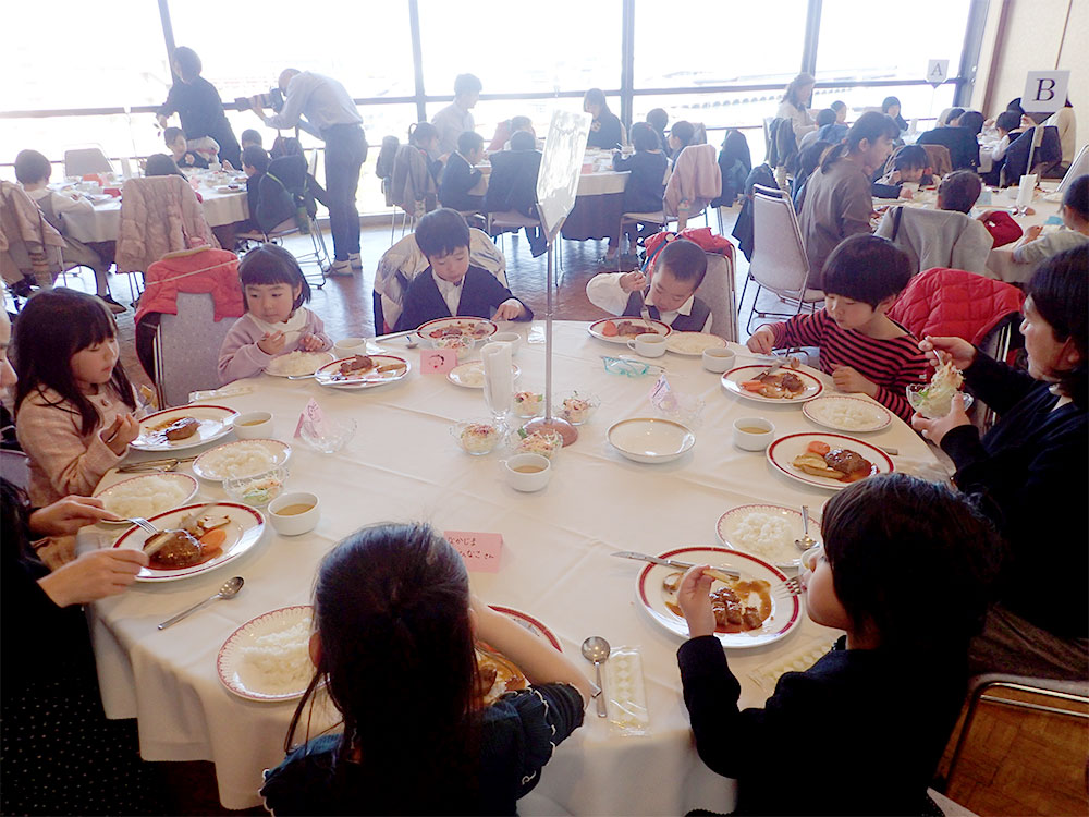 | 内容 | 園内見学 10:00~11:00 (保育中の保育室や園庭での様子を見ていただきます) 説明会 11:00~11:30 (園の概要、活動、保育内容について・質問など) 試食会 11:30~12:00 (お子さんとお弁当給食を保育室で食べてみます・要予約) |