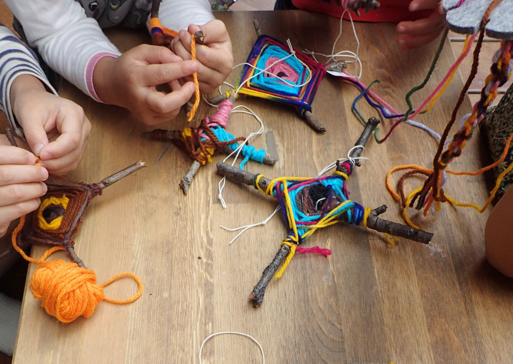 羊毛、毛糸、布など自然の素材を使った手仕事(縫い物、指あみ、織物、フェルト作り、)