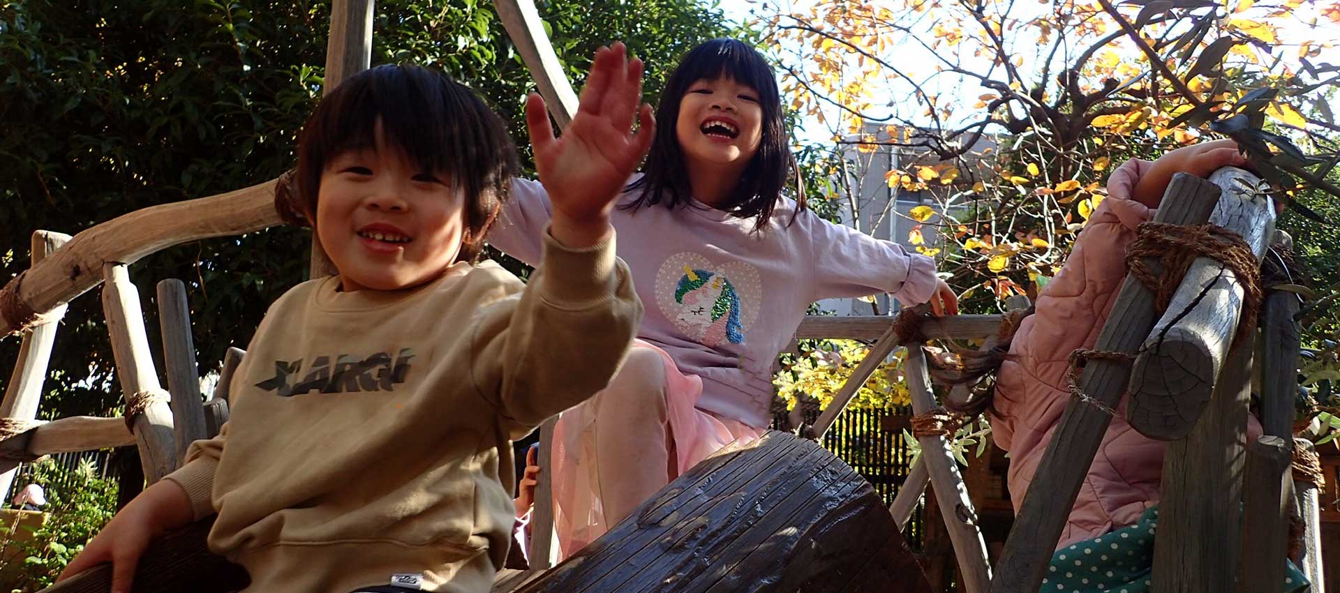 “遊ぶ”とは子どもの心の内面の表れであると言われています。乳幼児においては、生活も含めて楽しみながら経験し学んでいきますので、安定した状態でなんでも楽しんで遊びとしていくこと、そして、自らの身体を十分に使った、仲間との多様な実体験による学びができる環境や計画を立てています。