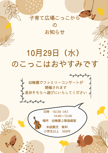 | 場所 | 幼稚園内1Fいちょうの部屋 |