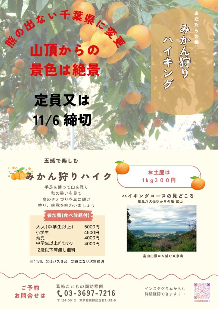 みかん狩りハイキング 行先変更 – 自分らしく育つ園|葛飾こどもの園幼稚園(東京都葛飾区)