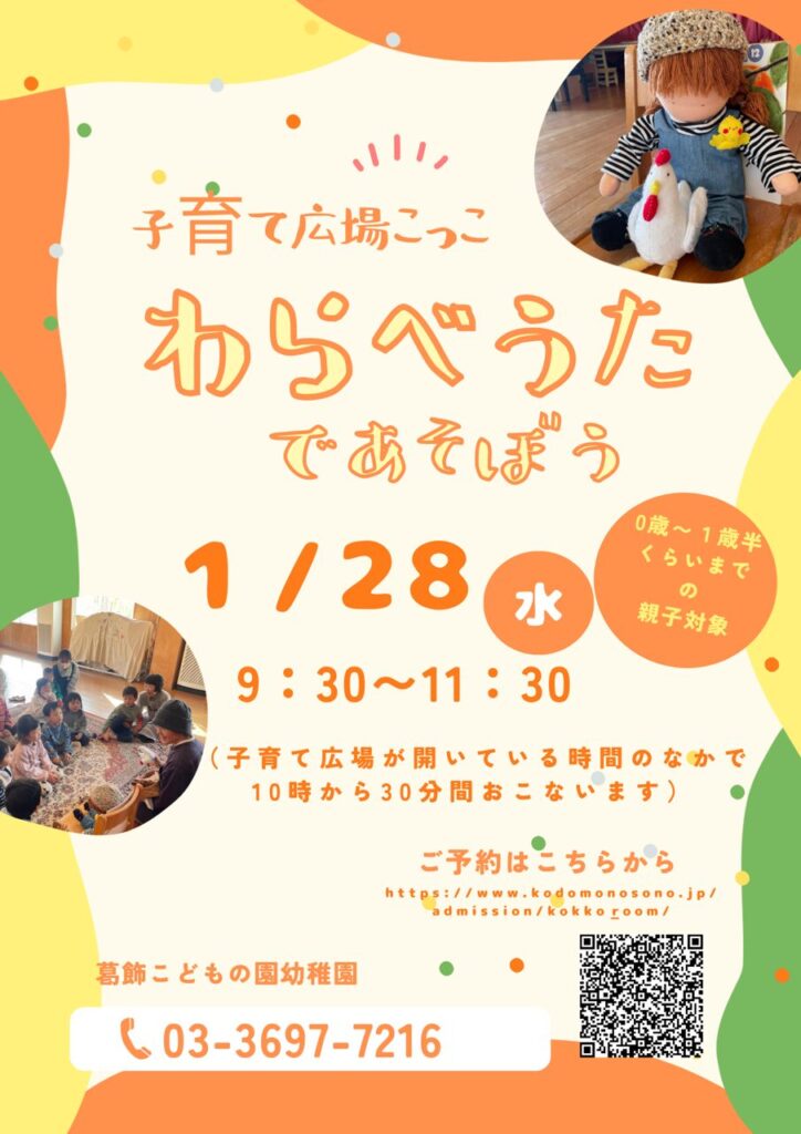 1/21(水)こっこではフラワーアレンジメントが開催されました。 チューリップを使った、春らしく可愛いアレンジでした。 チューリップの高さに差をつけてバラは色ごとにグルーピングをするなど、先生からアドバイスをもらいながら 楽しみました。 次のこっこはわらべうたの予定です。 是非お誘いあわせのうえ、遊びにいらしてください。 お時間の訂正です。ポスターには10時~となっていますが、10:40~30分間の予定です。 ご予約はこちらから⇒⇒⇒