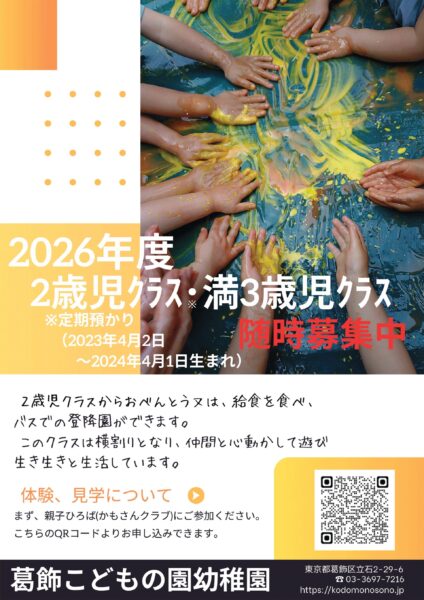 2026年度(令和8年度)2才児クラス・満3歳児クラス募集のお知らせ