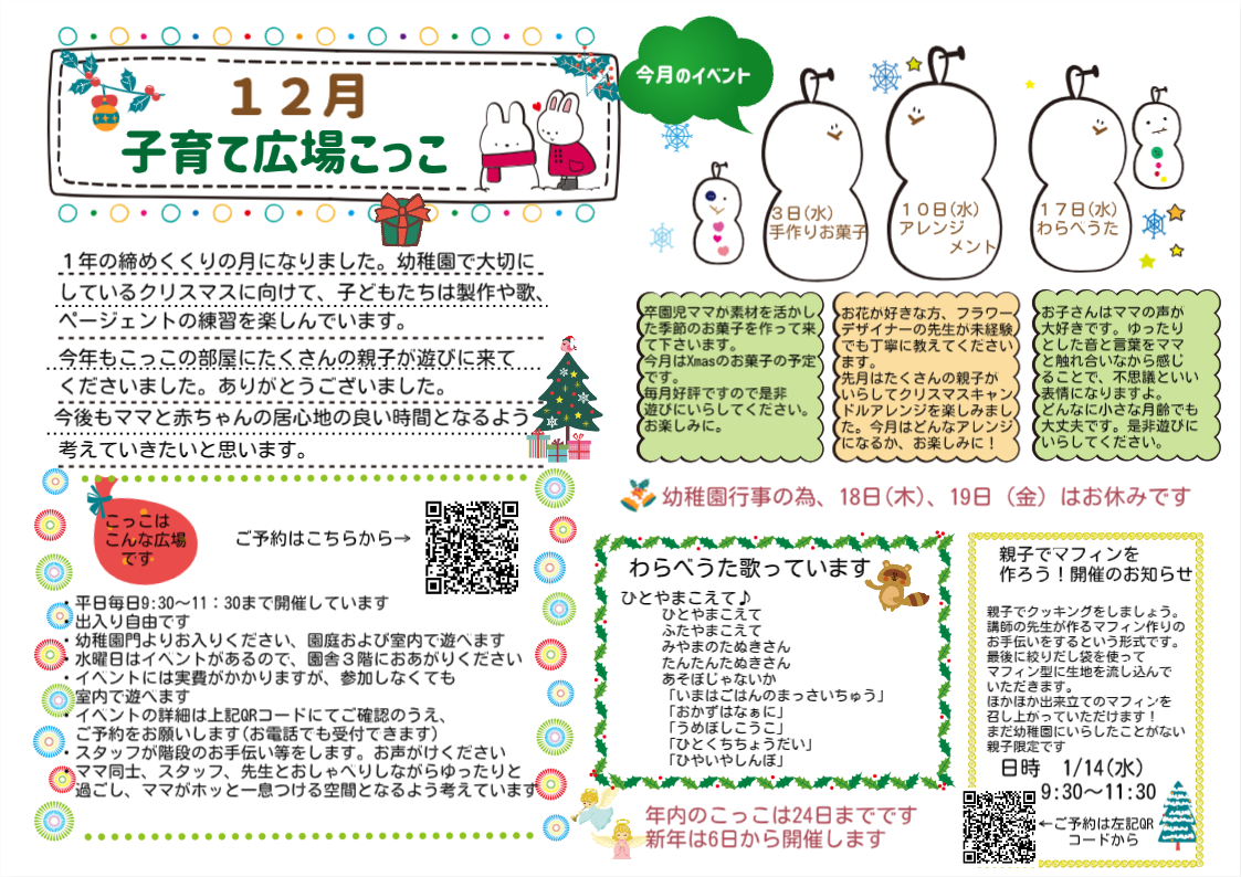 | 場所 | 幼稚園内1Fいちょうの部屋 |
